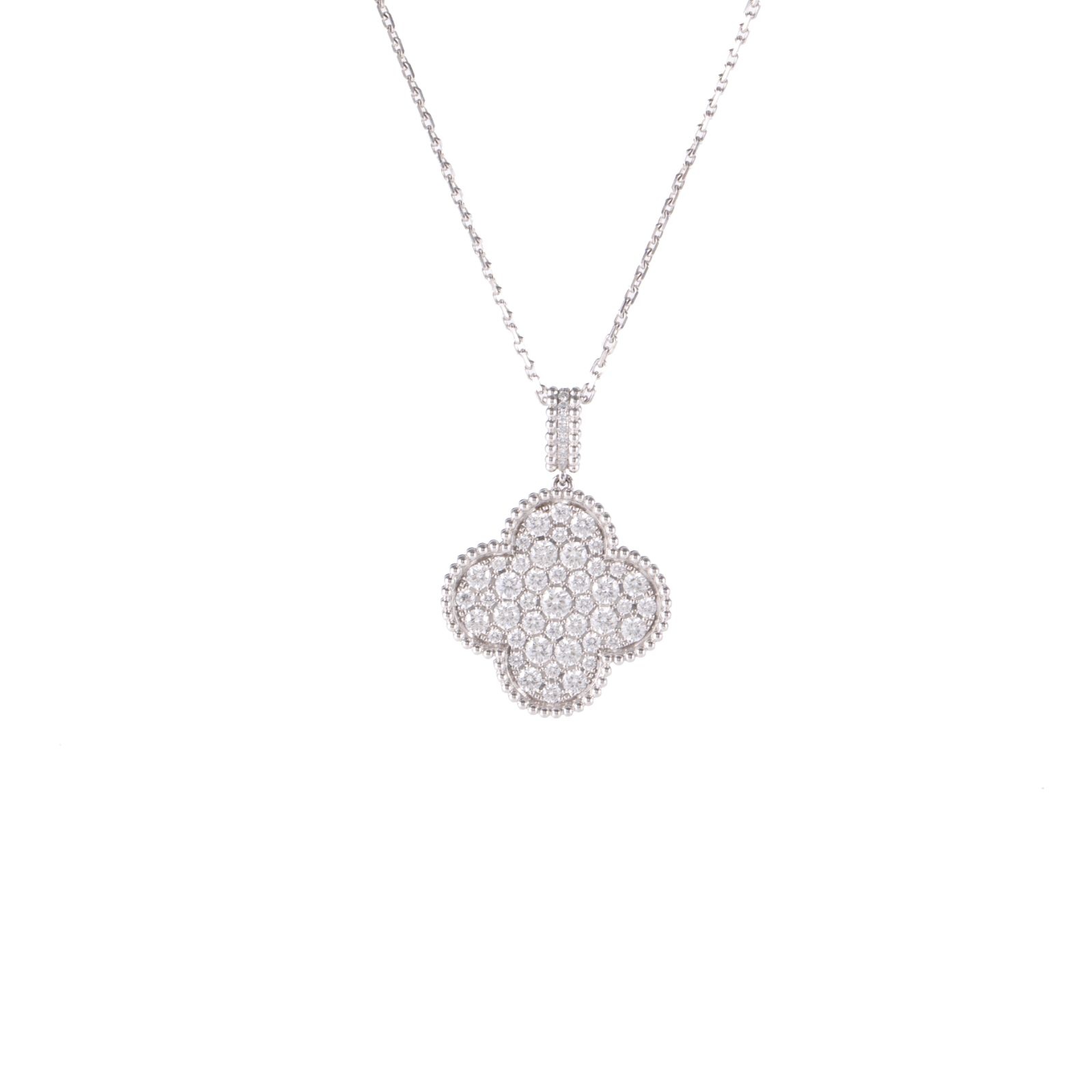 VAN CLEEF&ARPELS Magic Alhambra Large Single Flower Necklace Full Diamonds Diamond,18K White Gold