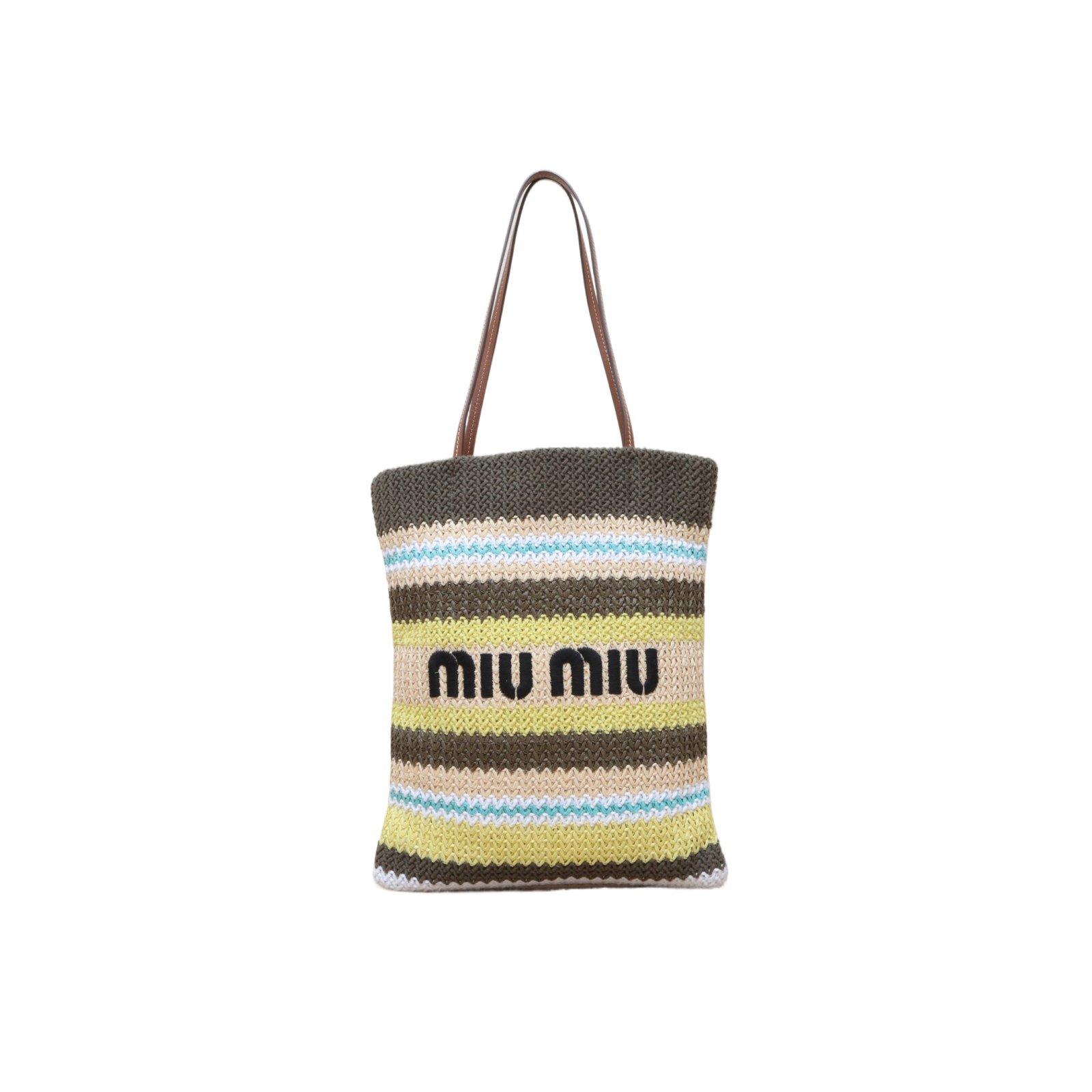MIUMIU Color-blocked Cotton Raffia Gold Hardware 25SS Borsa Raffia Colorful Striped Knit Shoulder Bag