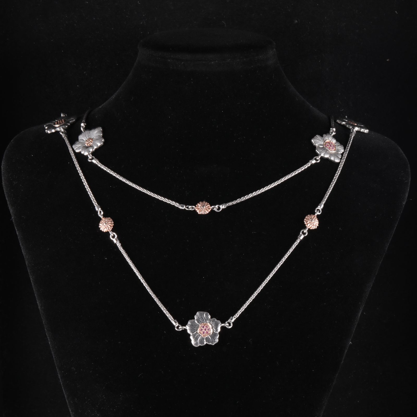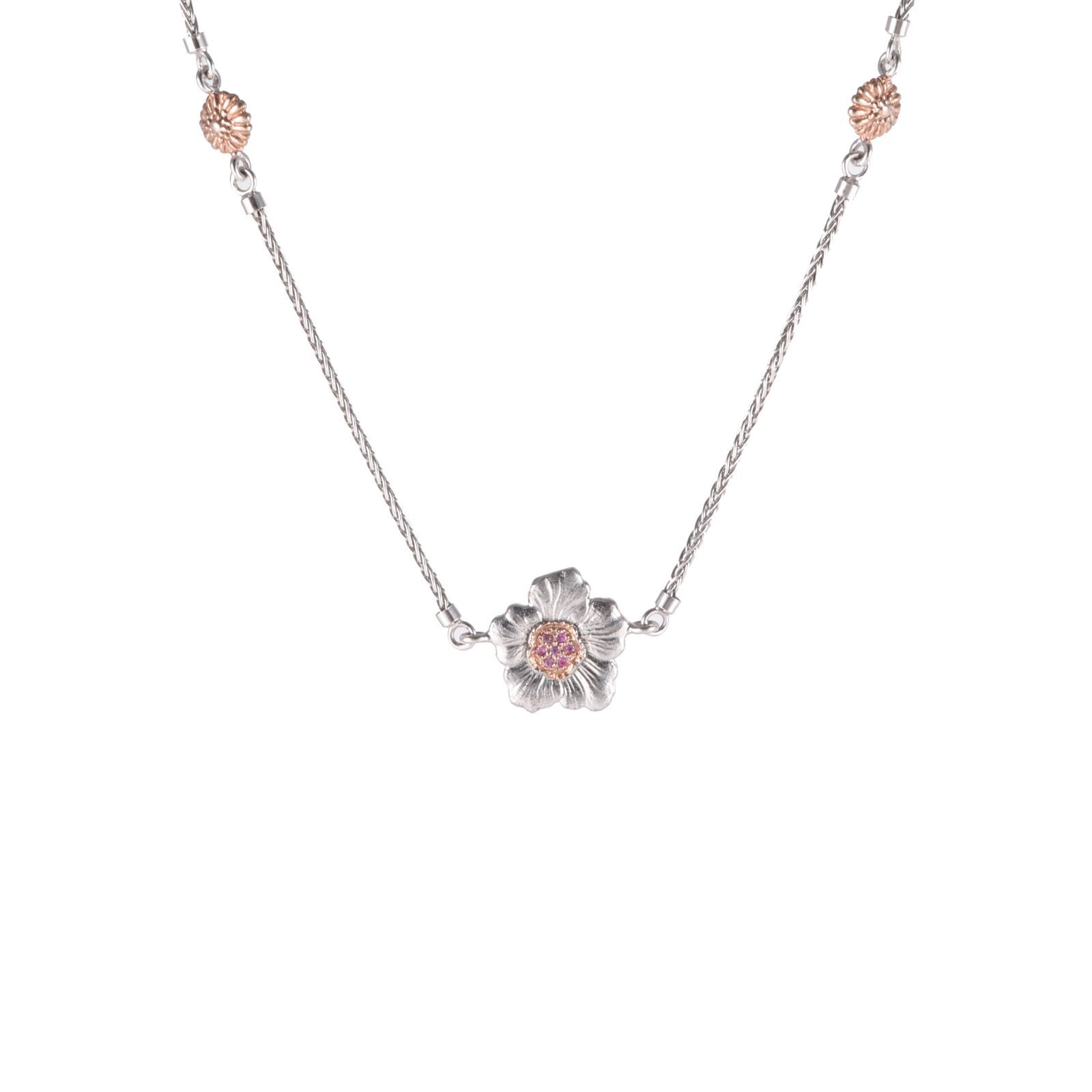 BUCCELLATI AG925 Silver BLOSSOMS Pink Sapphire Necklace Sterling Silver