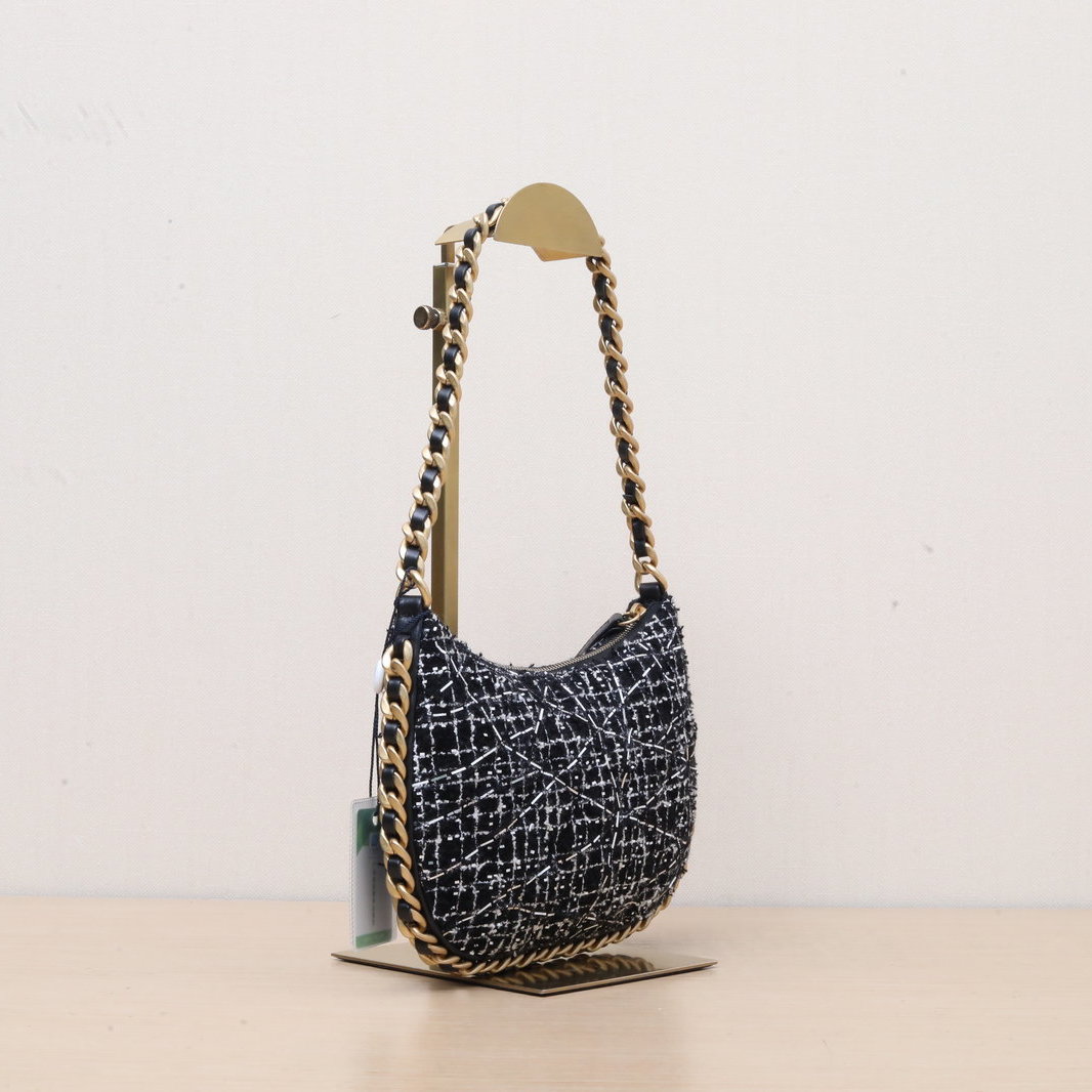 CHANEL 23B Leather-Threaded Chain Edge Hobo Shoulder and Crossbody Bag with Single Chain