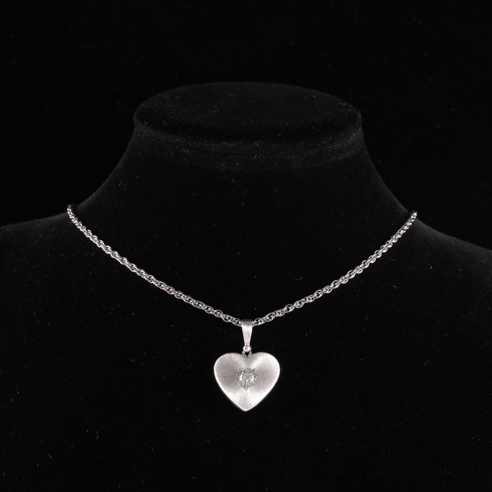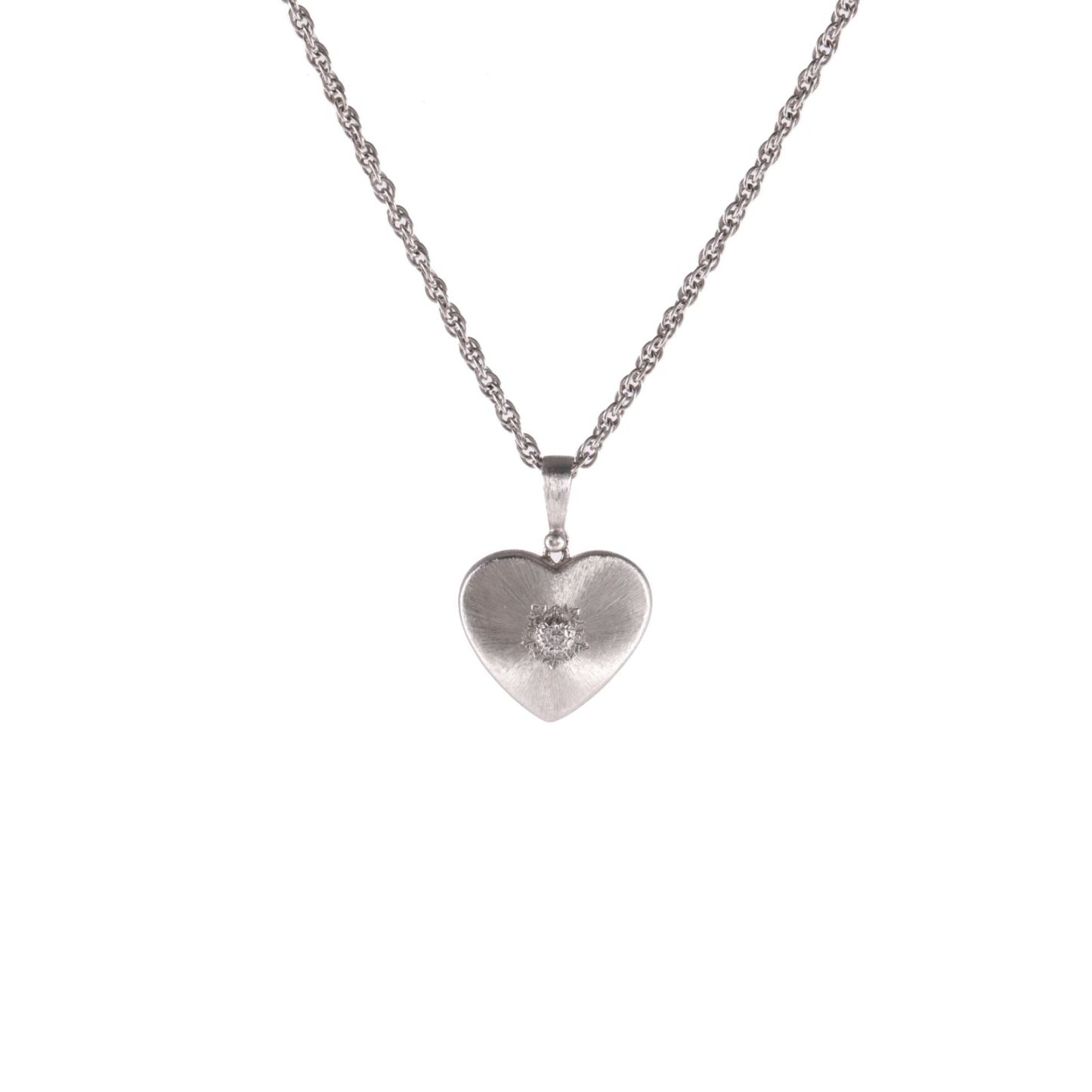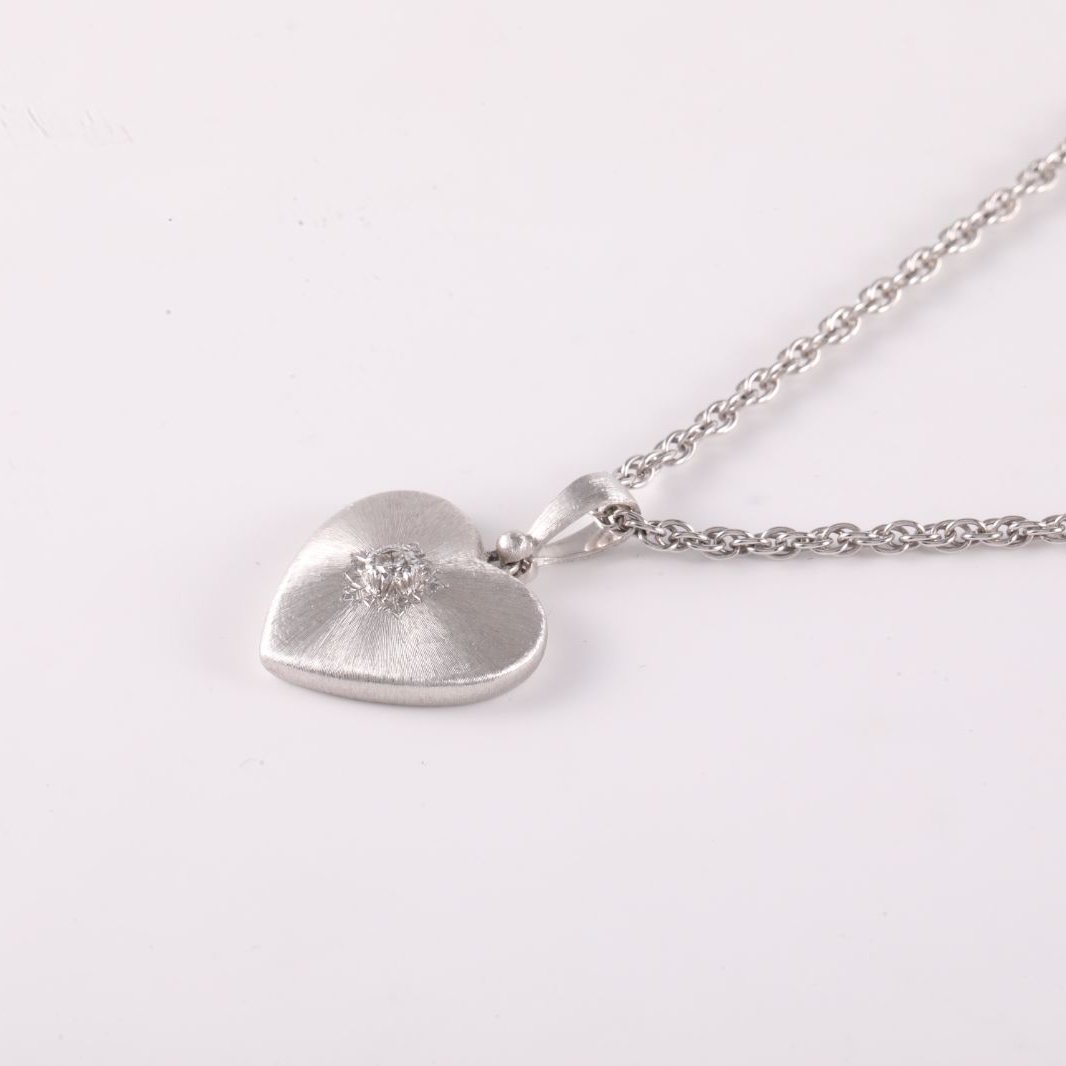 BUCCELLATI Platinum MARCI Collection Heart Necklace Single Diamond 18K 18K White Gold,Diamond