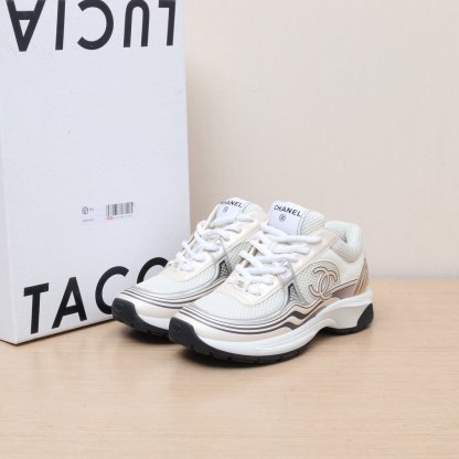 CHANEL Colorblock 23C Double C logo Sneakers Gold 36.5