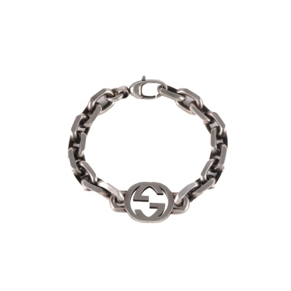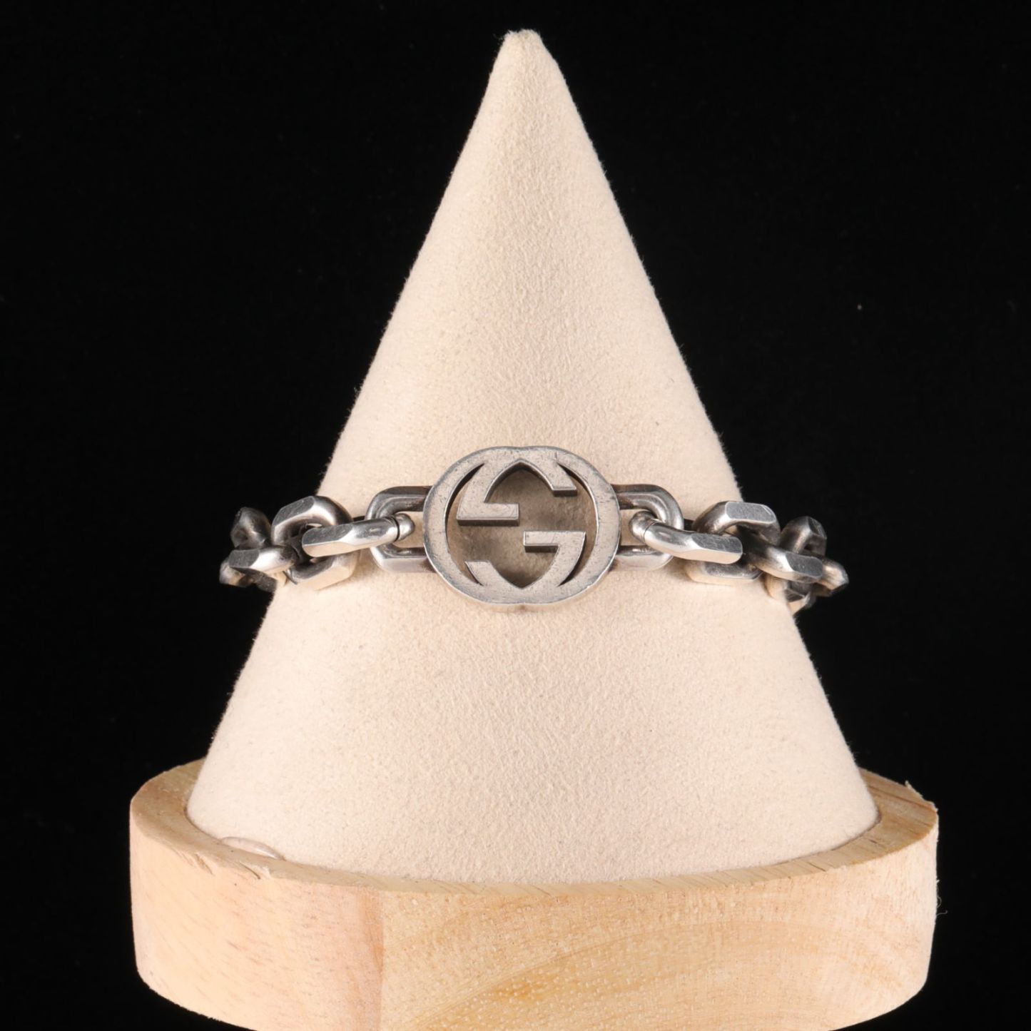 GUCCI AG925 Silver GG Thick Chain Bracelet 17 Sterling Silver
