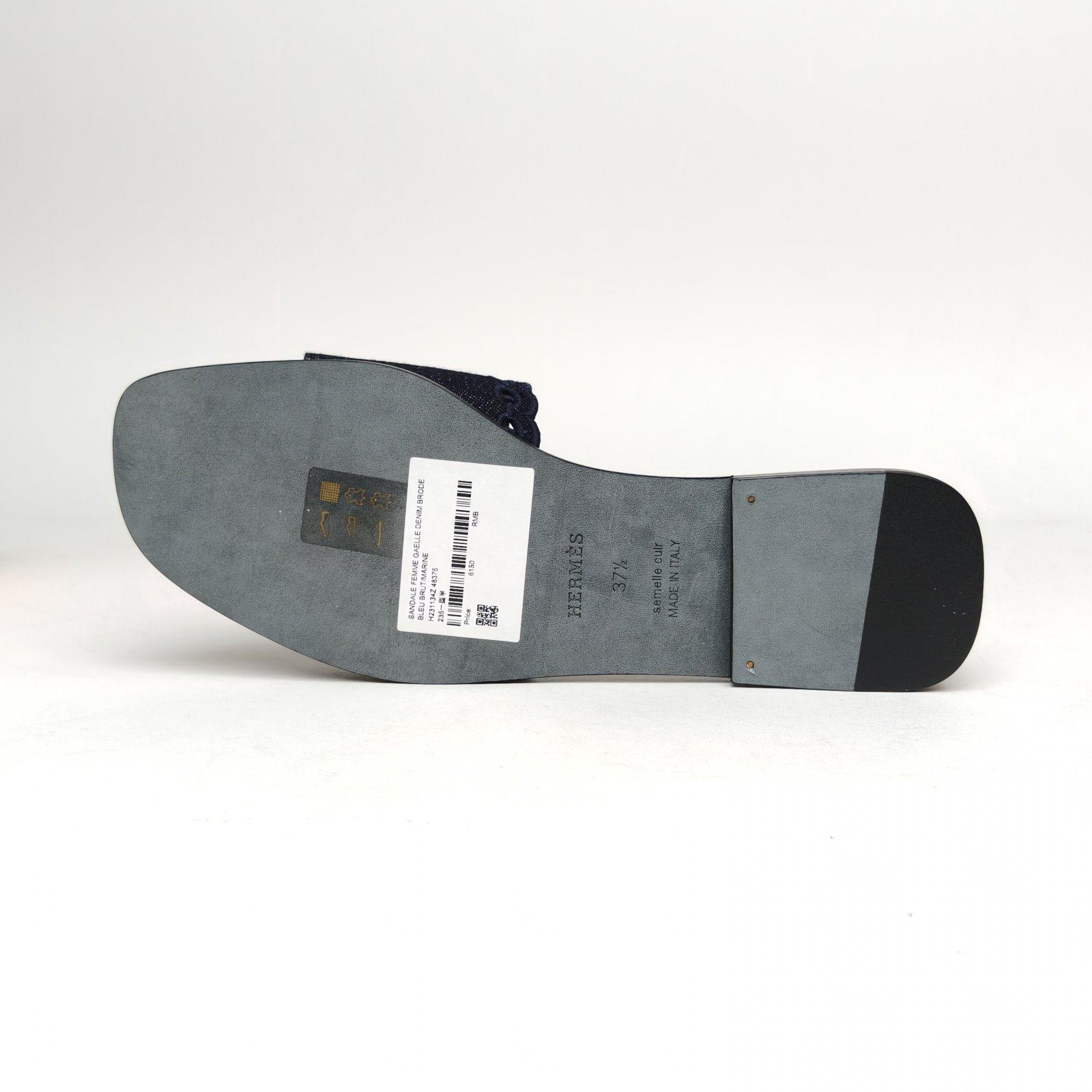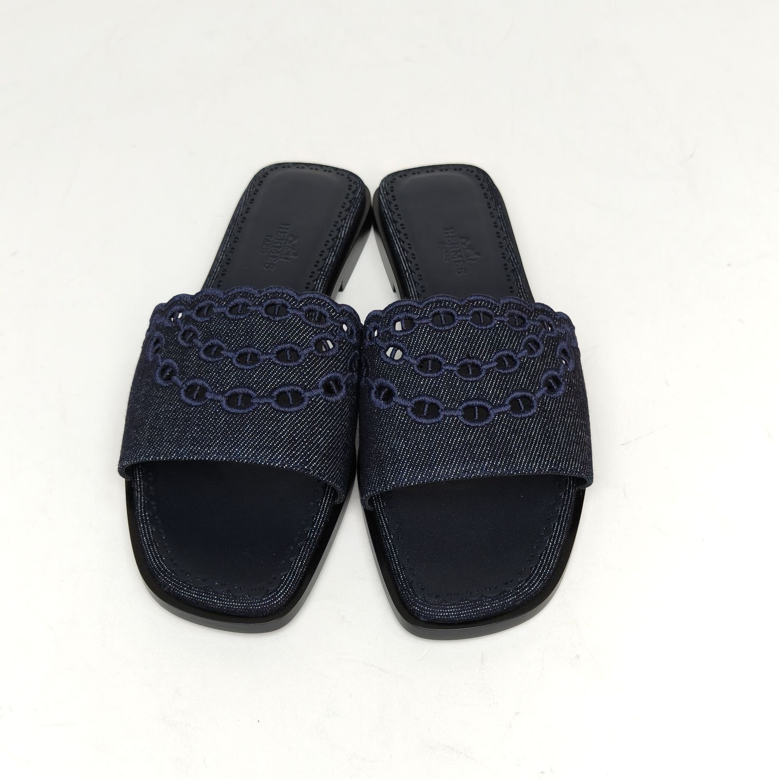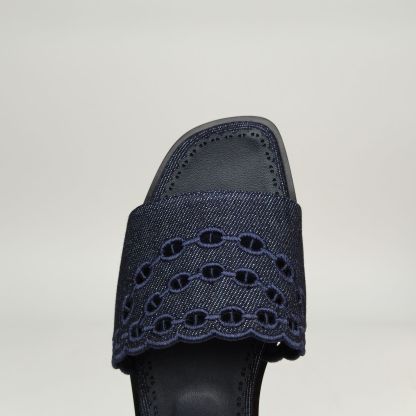 HERMES Blue Pig Nose Flat Slippers 37.5