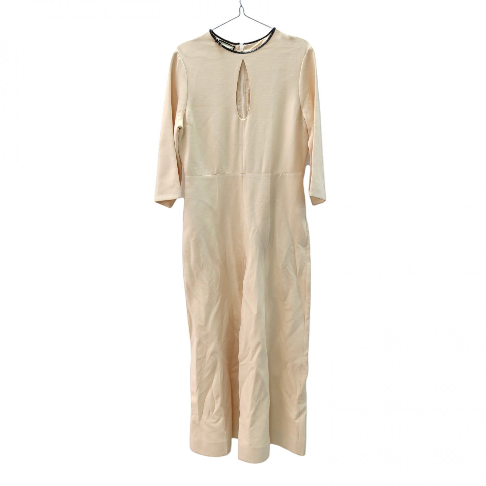 GUCCI 624974 Silver G Black Leather Belt Notched Jumpsuit Off-White 42