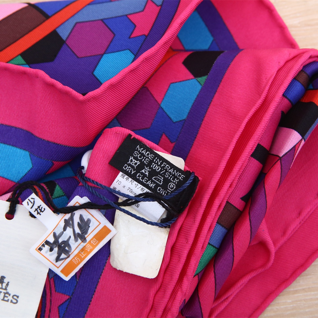 HERMES Silk Scarf 70*70 Color Blocked