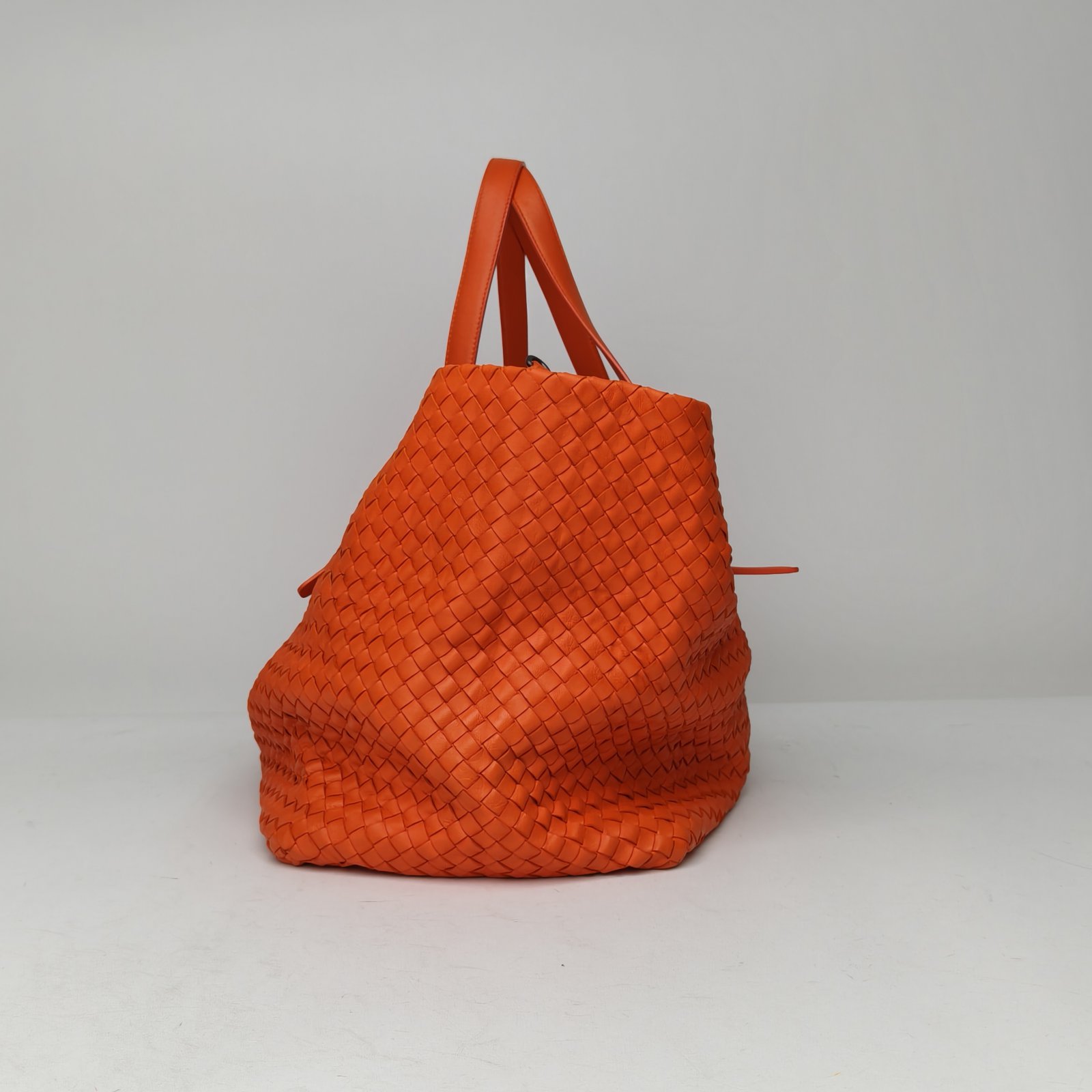 BOTTEGA VENETA Orange Tungsten Steel Hardware Classic Weave neverfull Shopping Bag Tote Bag