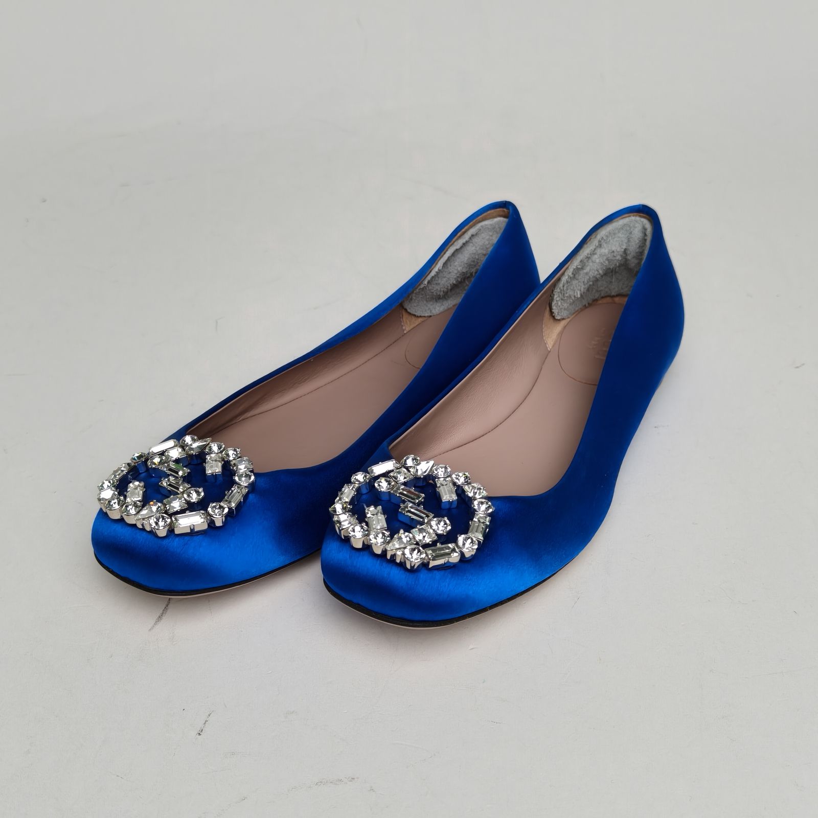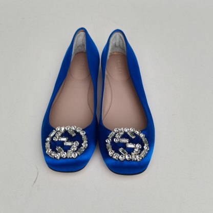 GUCCI Blue GG Crystal Buckle Flats 36