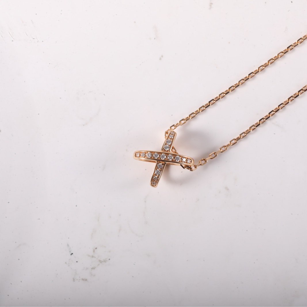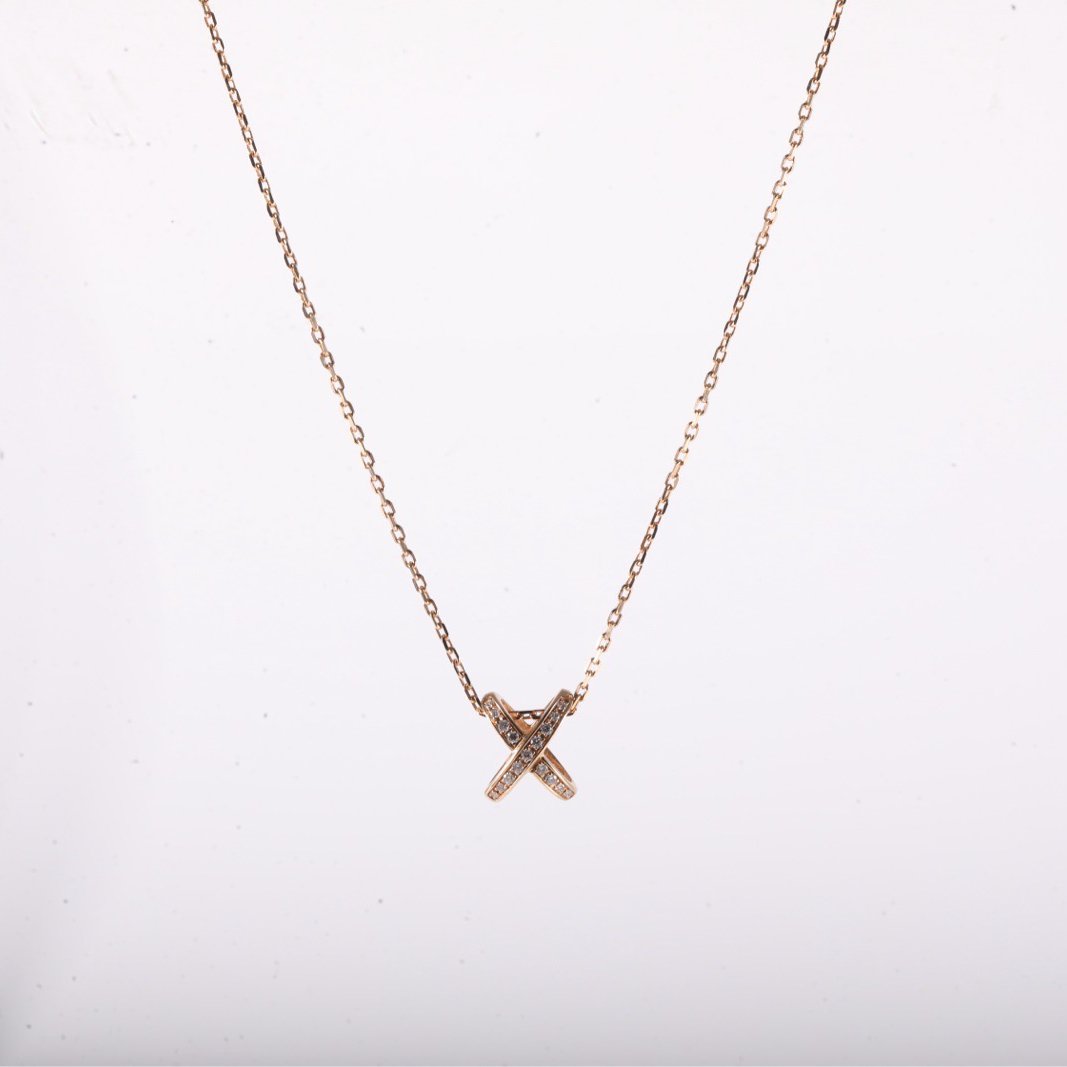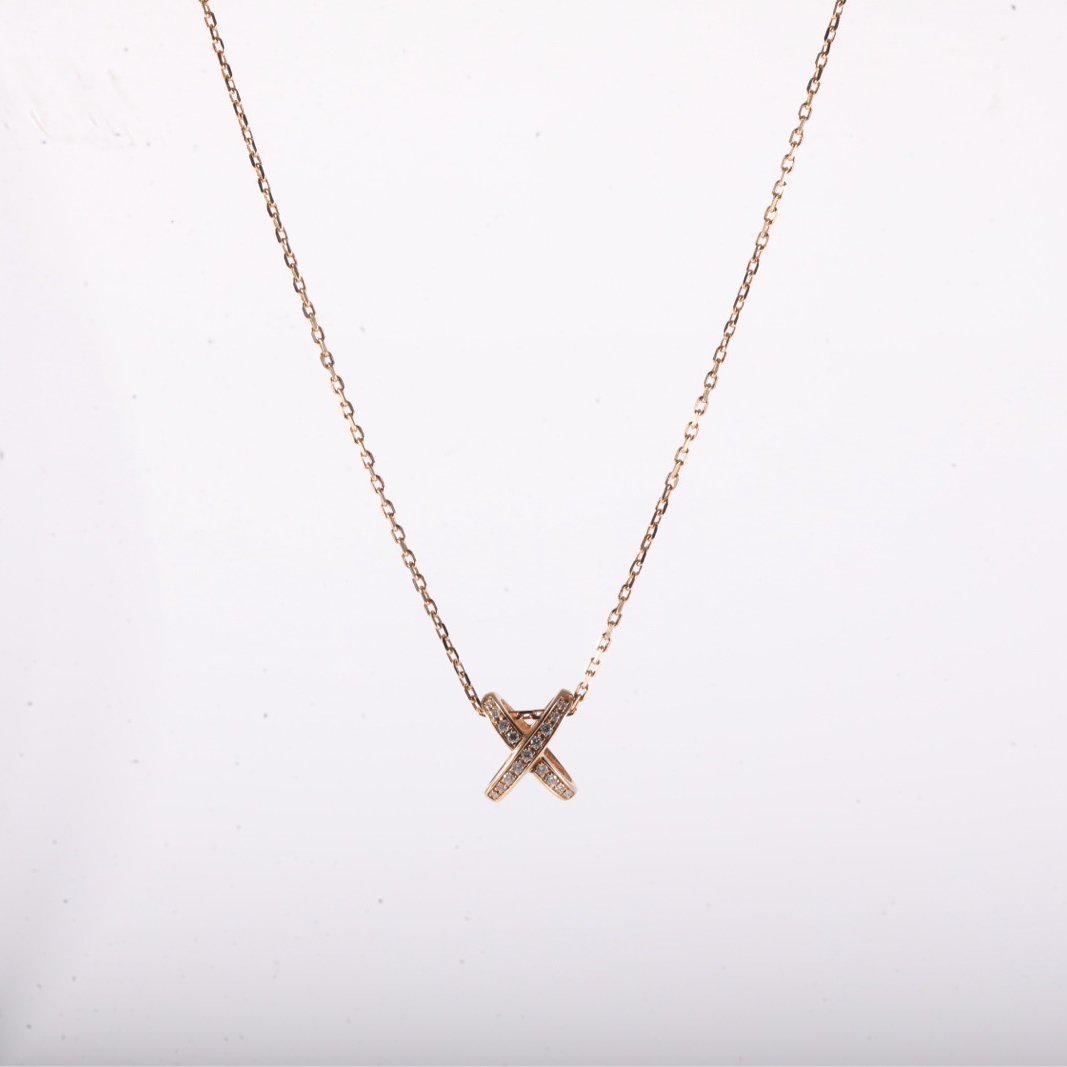 CHAUMET Juxe De Liens Vertical Large Fork Necklace Full Diamond 18K Rose Gold,Diamond