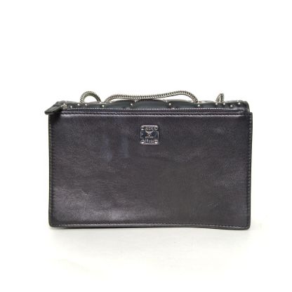 MCM Black Silver Hardware Rivet Chain Crossbody Bag