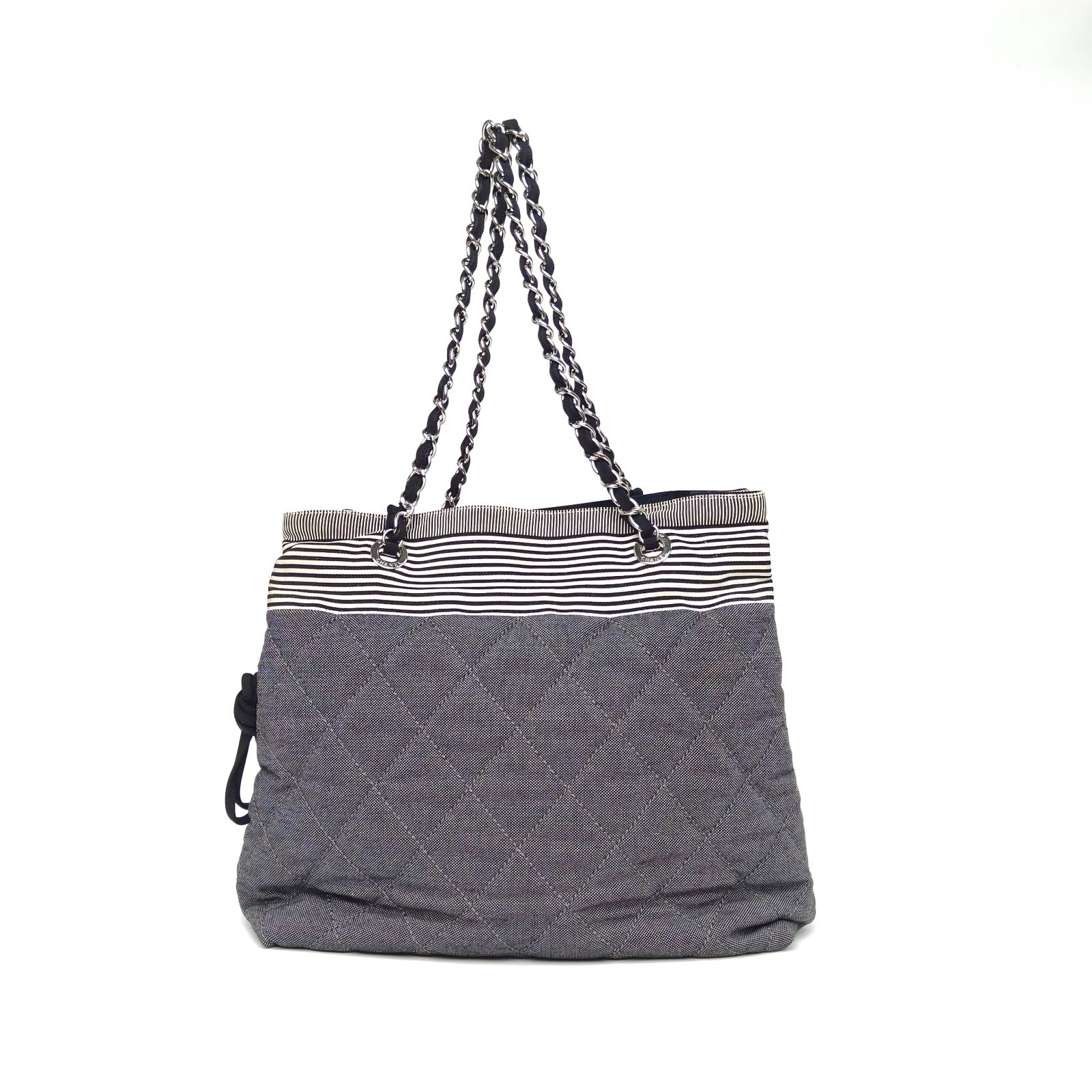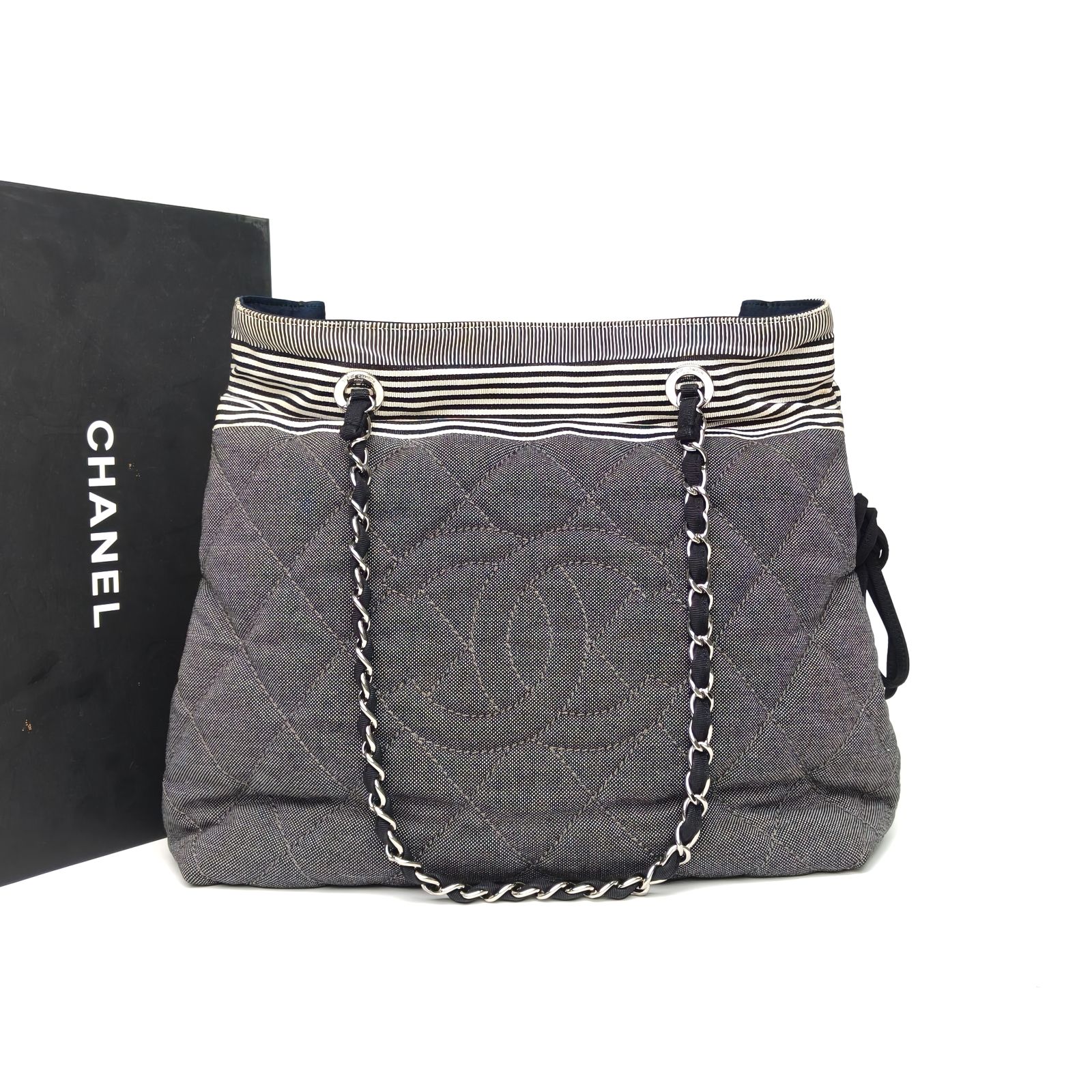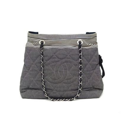 CHANEL Colorblock Canvas 2010 Silver Hardware Double C Large Logo Tote Bag