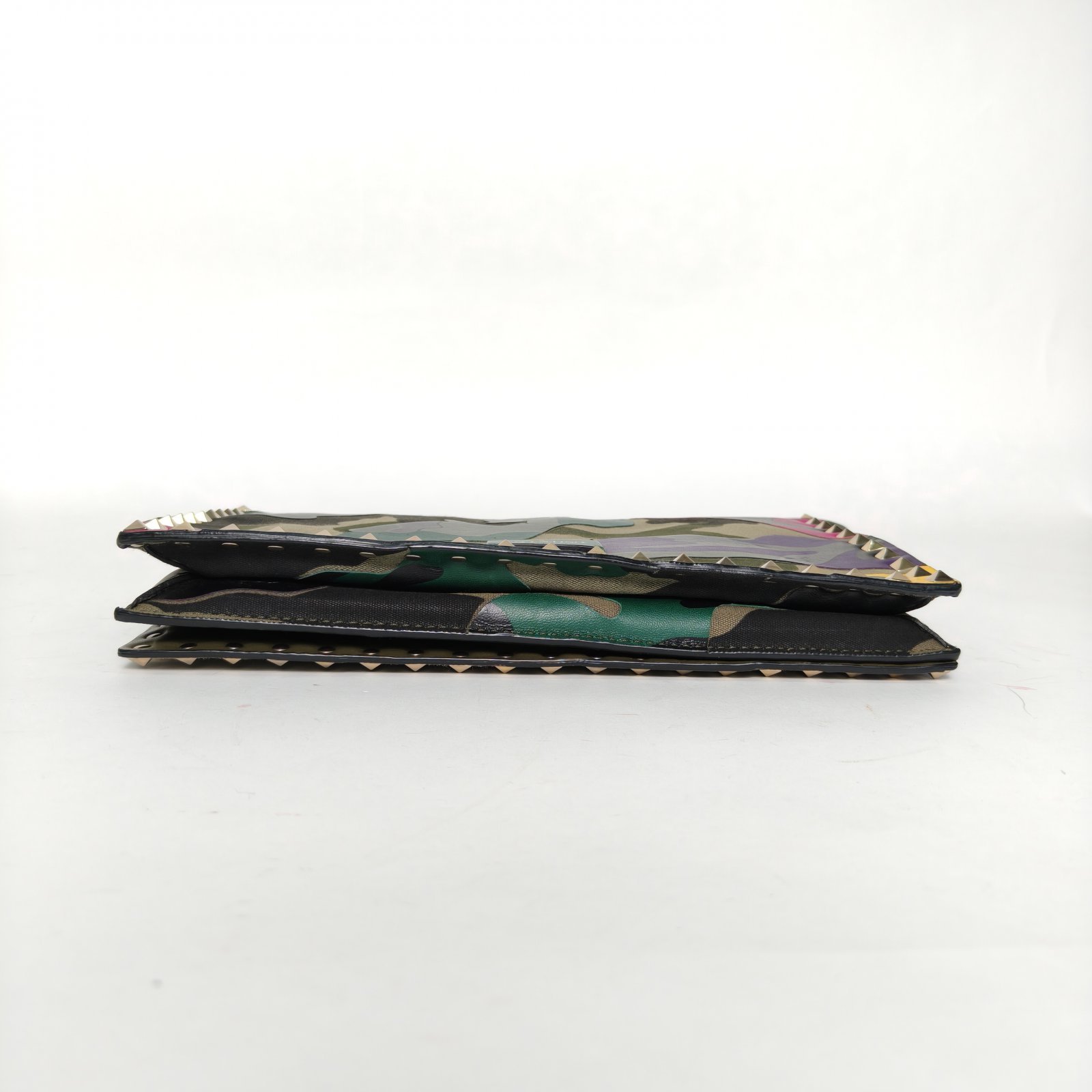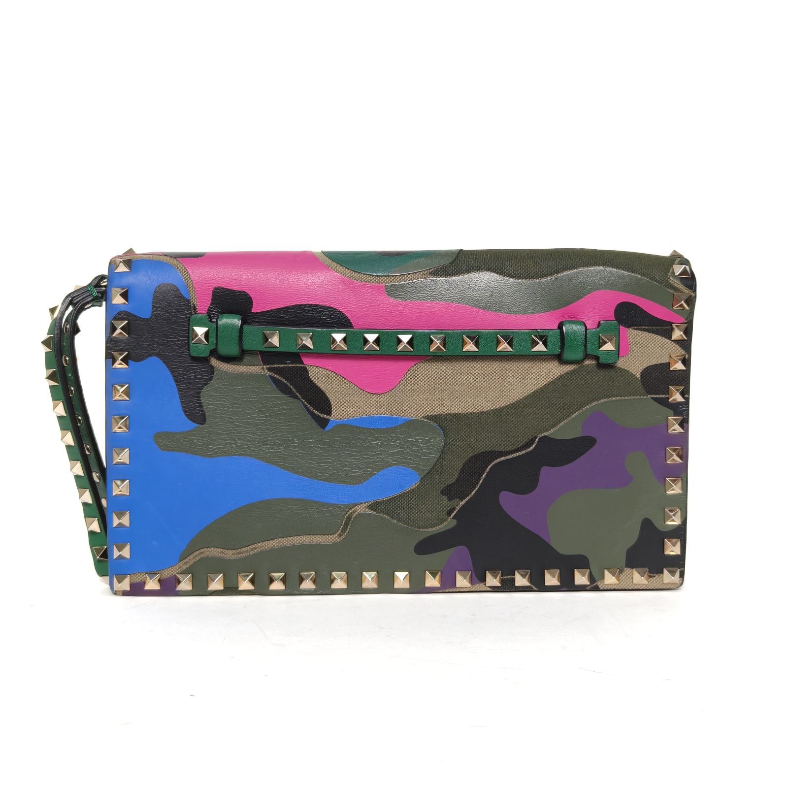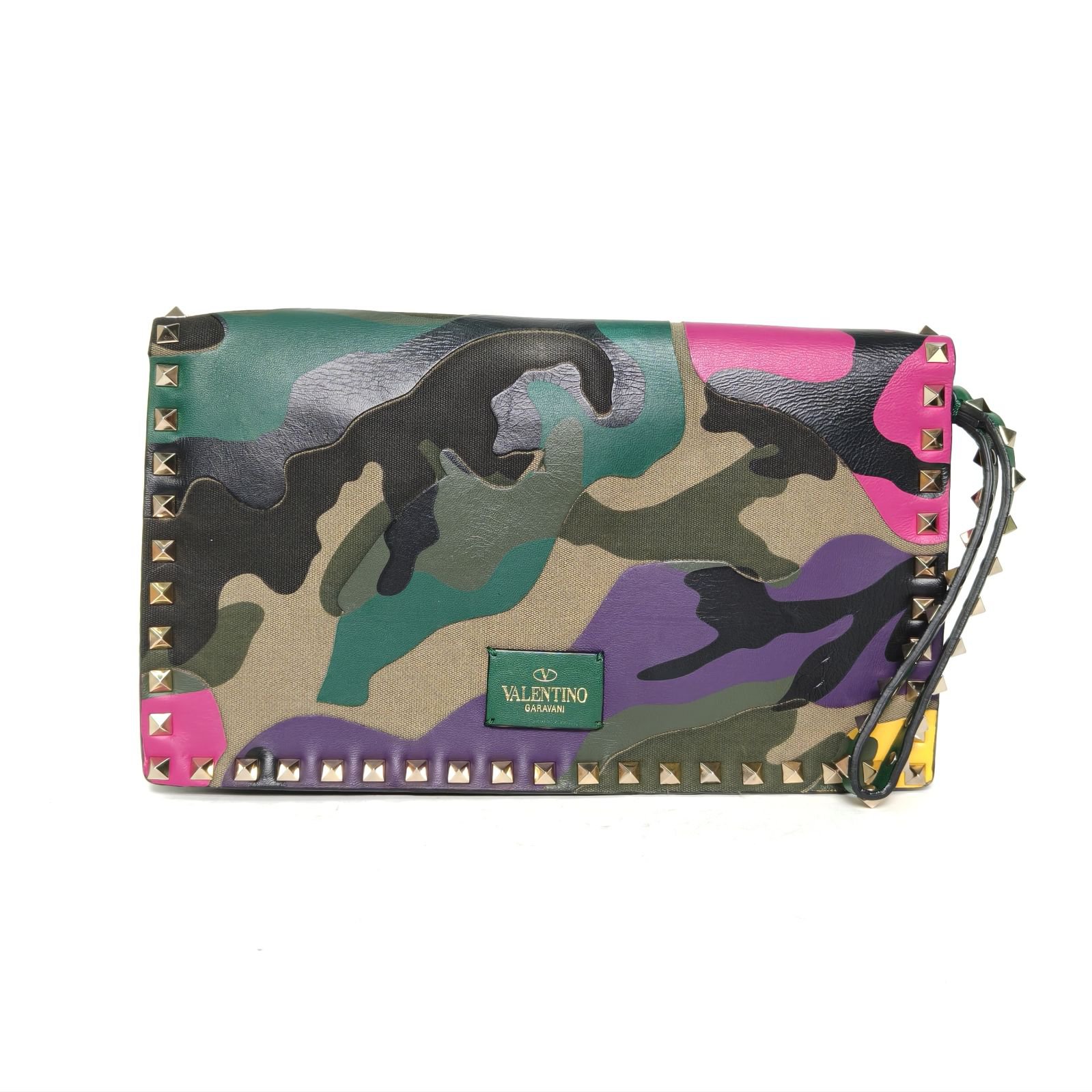 VALENTINO Colorblock Canvas Camouflage Rivet Clutch Bag