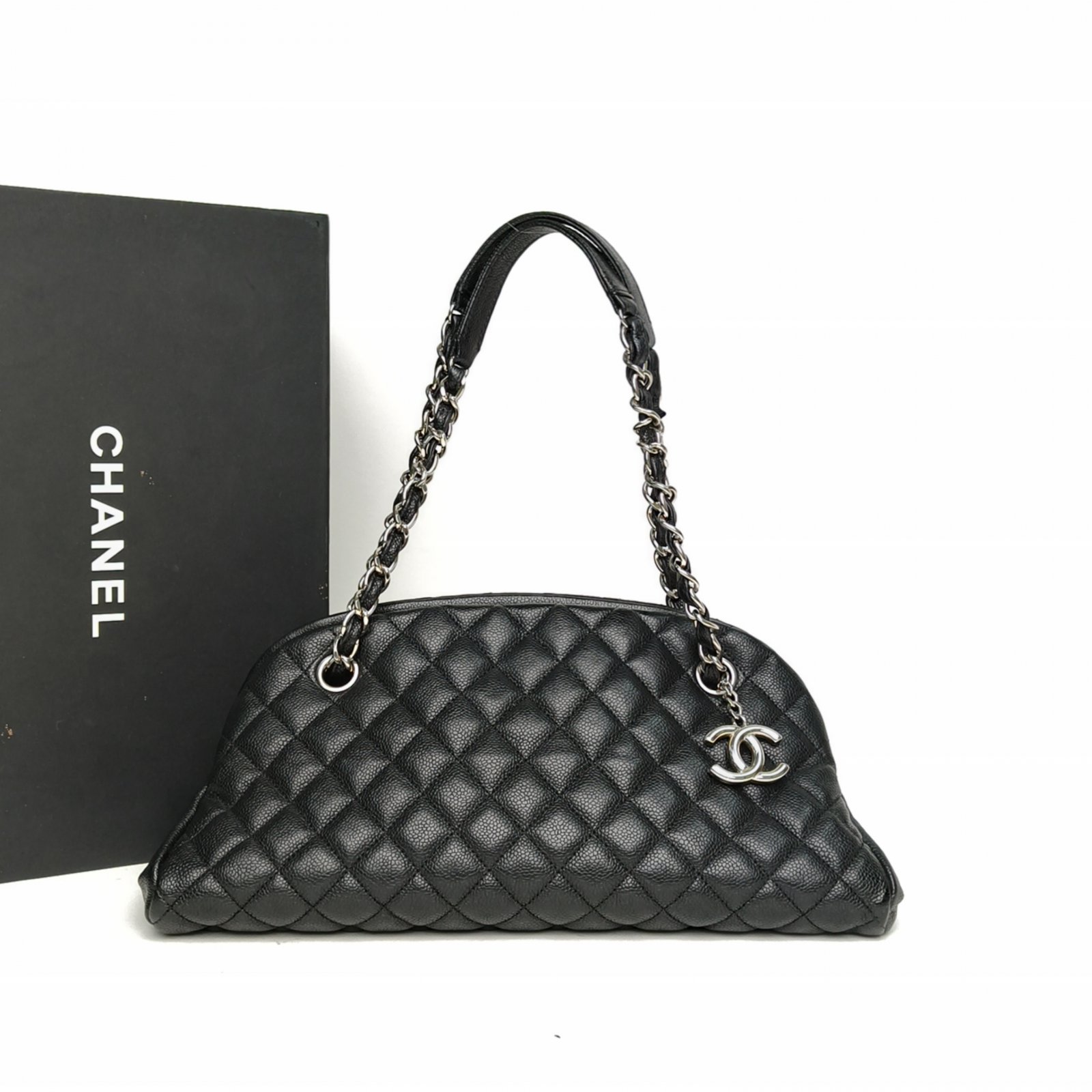 CHANEL Black 2011 Sliver Hardware Double C Pendant Bolide Chain Bag Shoulder Bag
