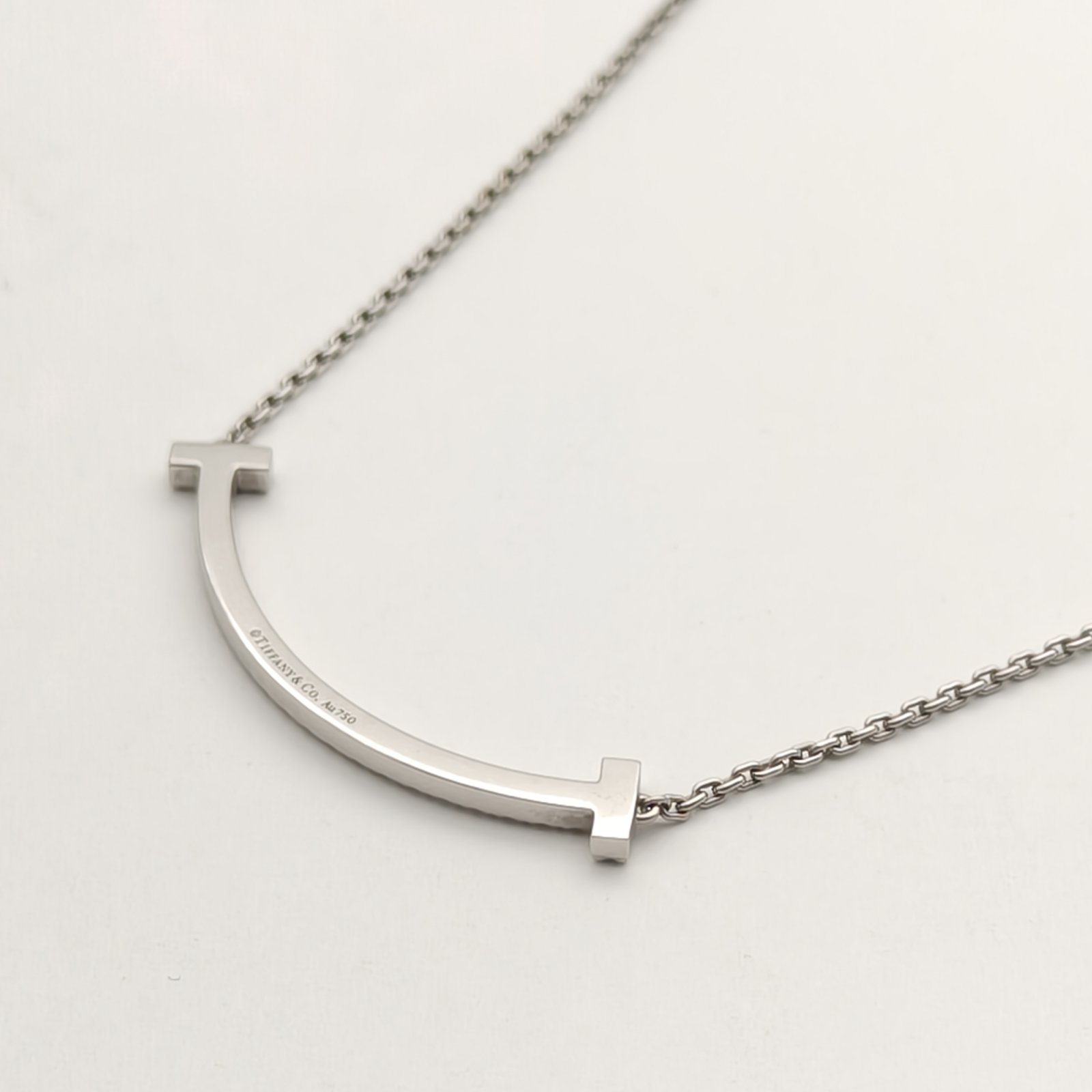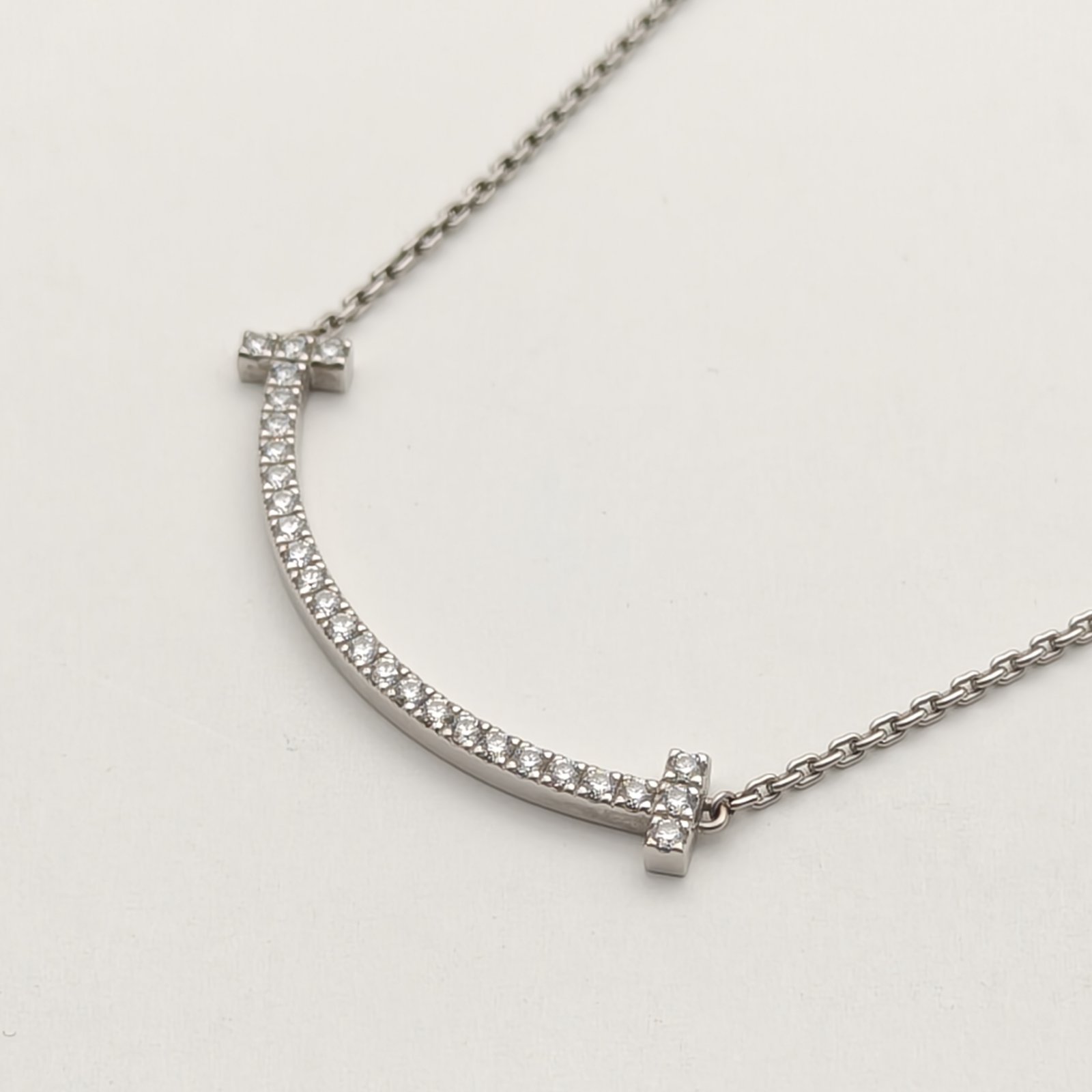 TIFFANY&CO Tiffany T Smile Necklace Wide Medium Full Diamonds 18K White Gold,Diamond