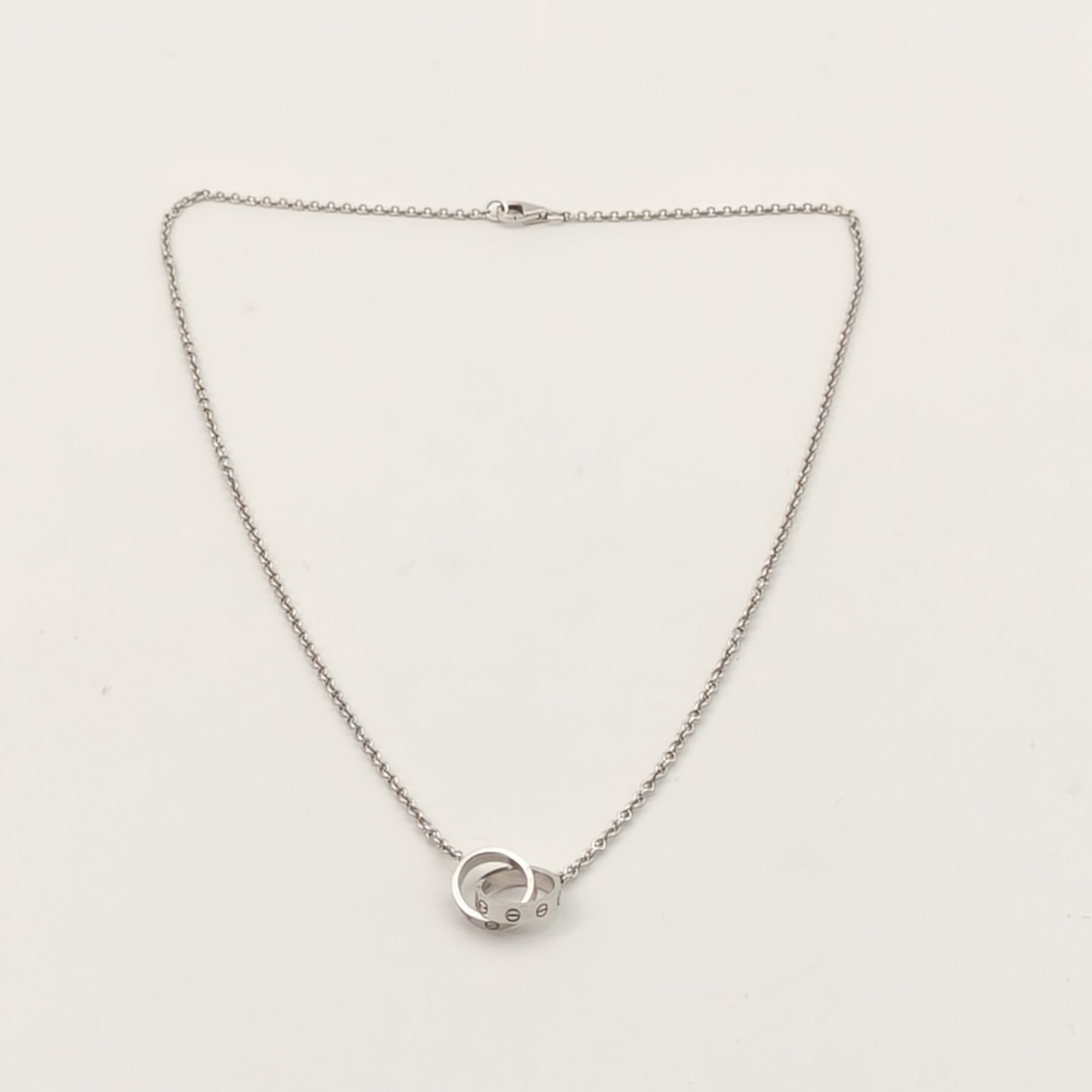 CARTIER LOVE 18K Gold Double Ring Necklace 18K White Gold