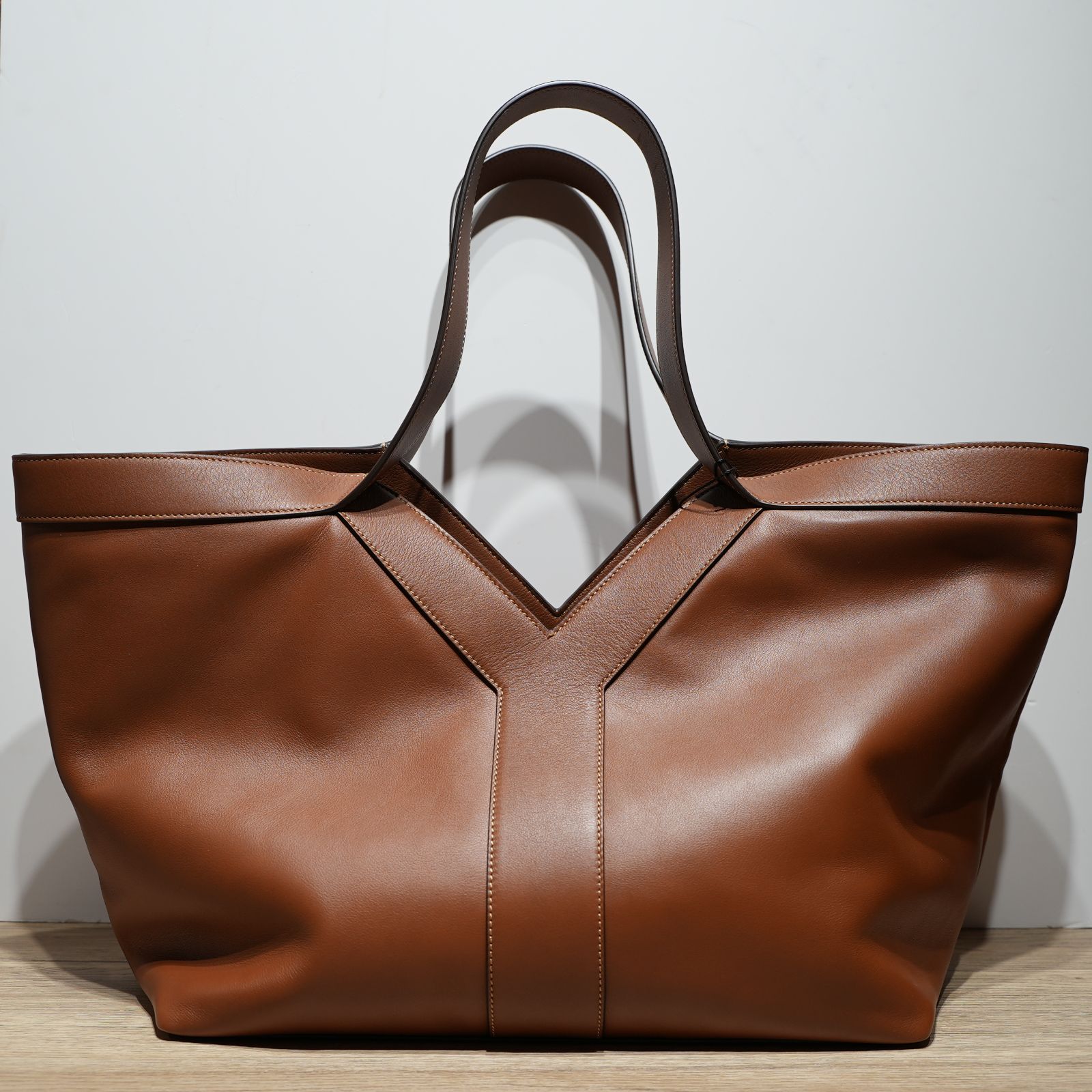 SAINT LAURENT Brown Gold Hardware YSL Tote Bag