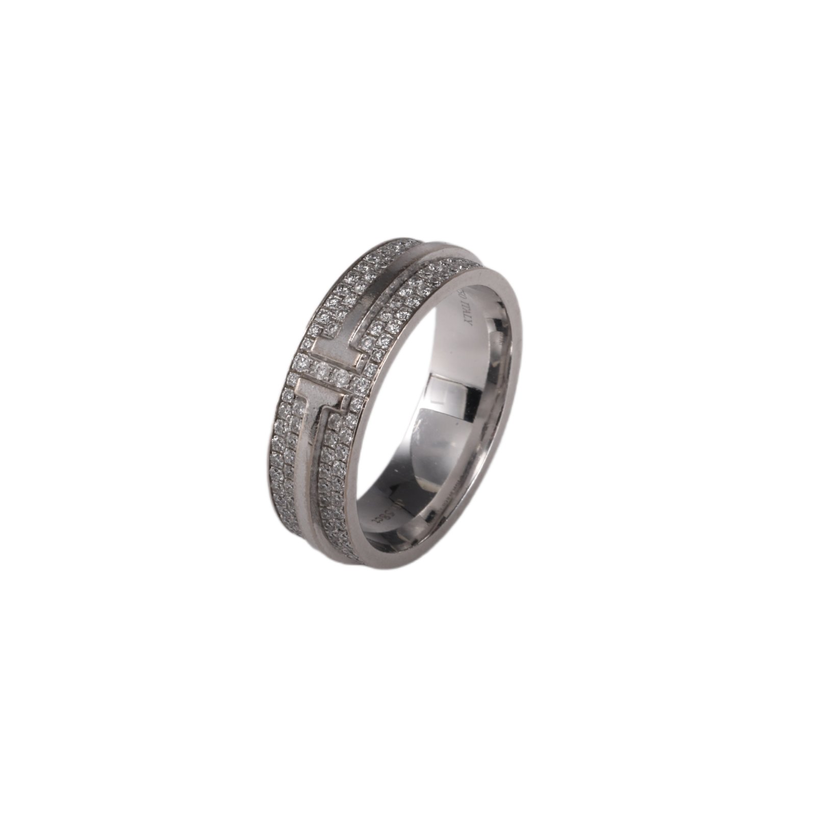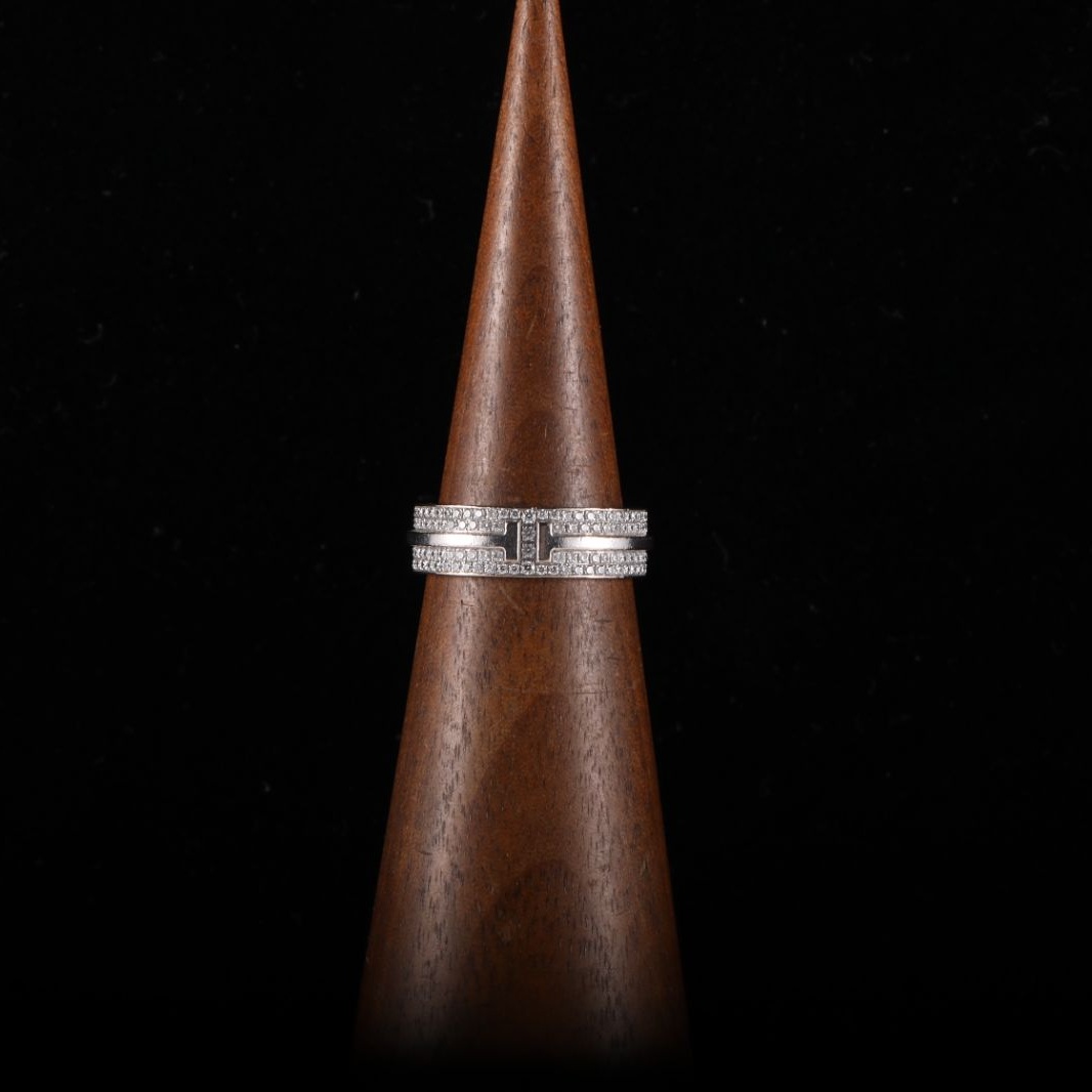 TIFFANY&CO Platinum Tiffany T Collection TWO Wide Diamond Ring 53 18K 18K White Gold,Diamond