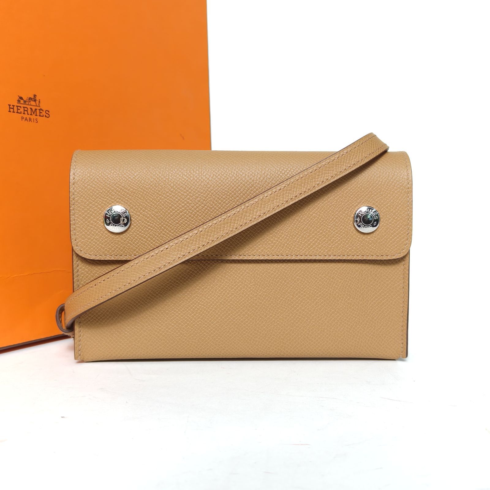 HERMES 4B New Biscuit Color Epsom Leather K 2025 Sliver Hardware Snap wallet Shoulder Bag