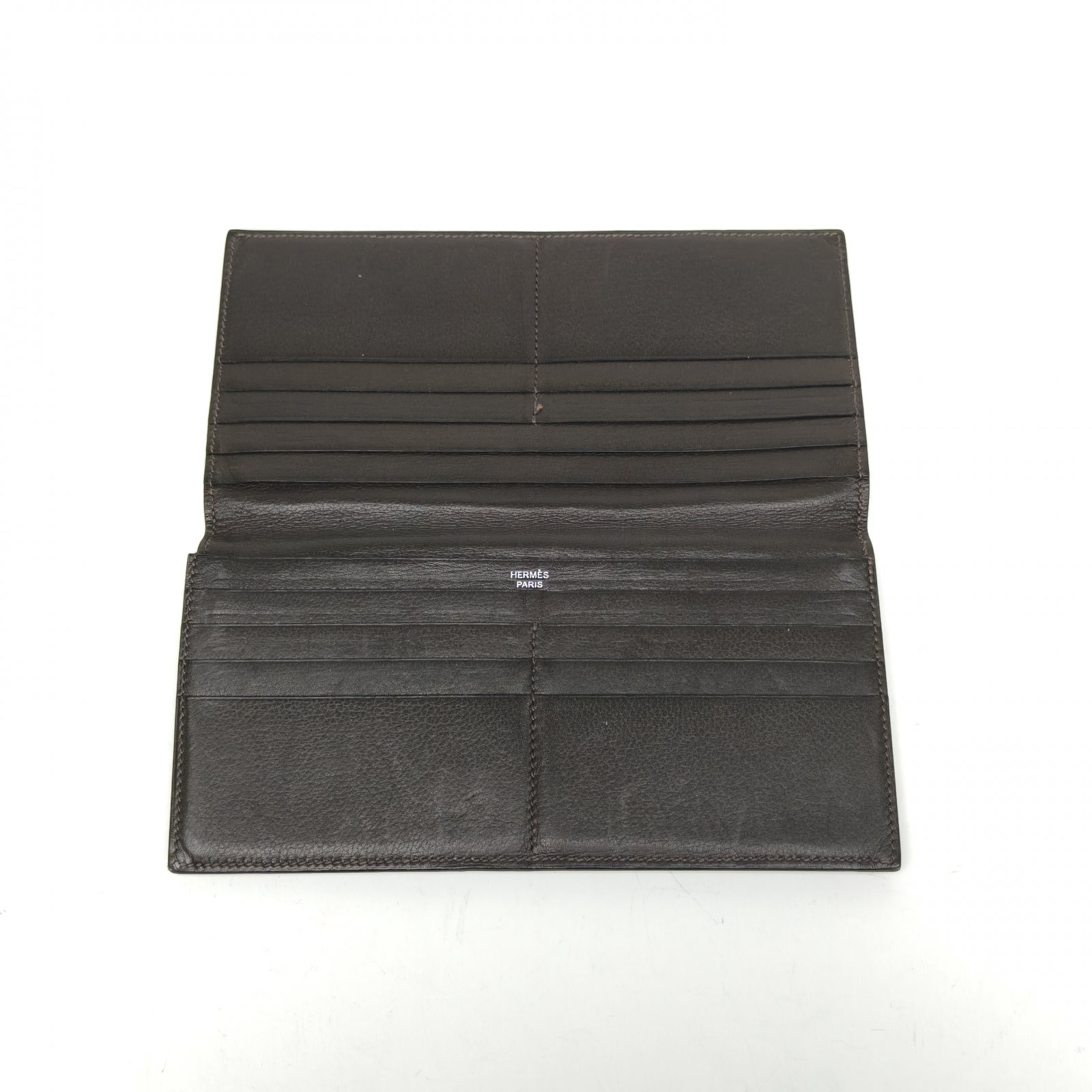 HERMES 47 Chocolate EC Leather Frame N Long Folding Wallet
